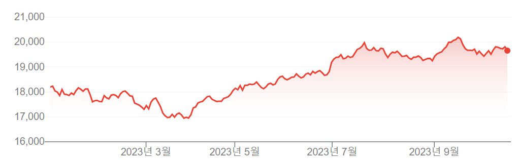 선진국과 신흥국의 향후 인플레이션에 기대가 다른 상황에서도 글로벌 경제의 연착륙(Soft Landing)에 대한 기대가 계속 있어온 덕에 주가는 양쪽 모두 상승하였습니다. 올해 미국과 유럽의 주가는 각각 10%, 12% 상승했으며 *기업 신용 스프레드는 이번 금리 인상 사이클 내에서 최저를 기록하고 있습니다. 일본의 경우는 기업 실적 향상 및 저금리 기조의 통화 정책으로 뚜렷한 자산 시장 상승이 있었고, 칠레, 헝가리, 인도 등 신흥국 또한 올해 뚜렷한 주가 상승을 경험했습니다.