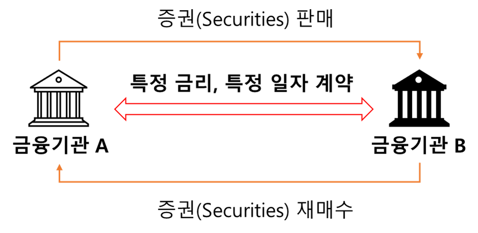 레포란 차입자(Borrower, 일반적으로 금융 기관)가 대출자(Lender, 또 다른 금융 기관)에 채권을 팔고 약속한 시점에, 약속한 금액으로 다시 되사기로 한 동의 하에 이루어지는 거래입니다. 일반적으로 이는 단기 담보 대출 계약입니다.
