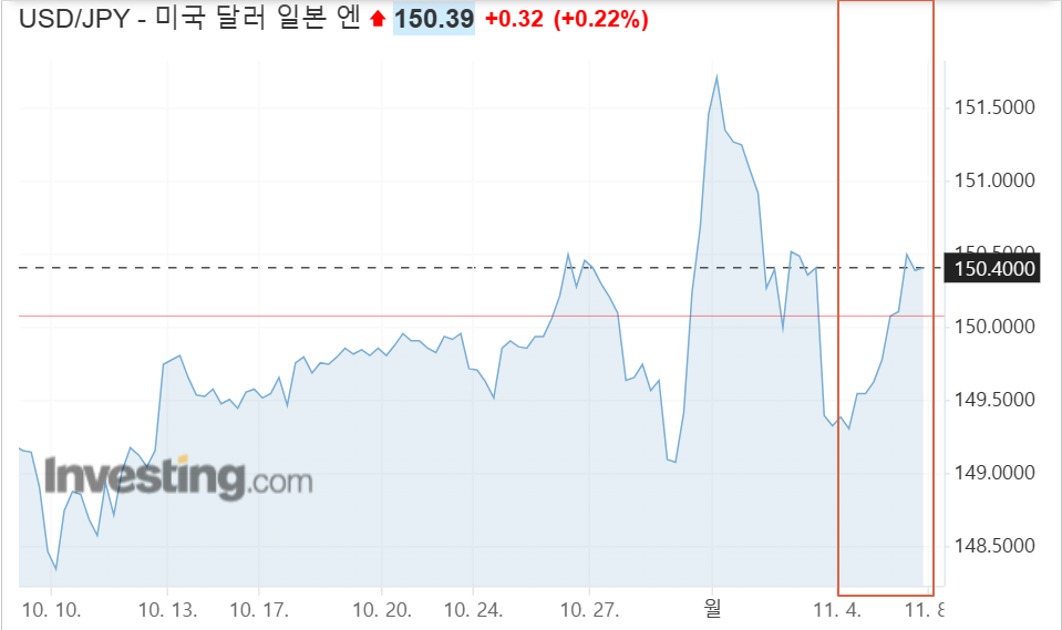 2. 10.31일 발표 이후 미 달러 대비 엔화 추이